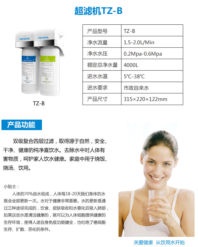 有效去除水中的異色、異味、余氯、細菌病毒等;同時保留對人體有益的礦物質。可用于燒飯、燒湯、喝水、洗水果等。